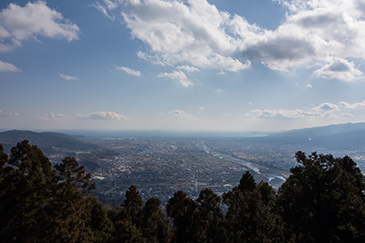 南を見れば、国府津、小田原の先に相模灘